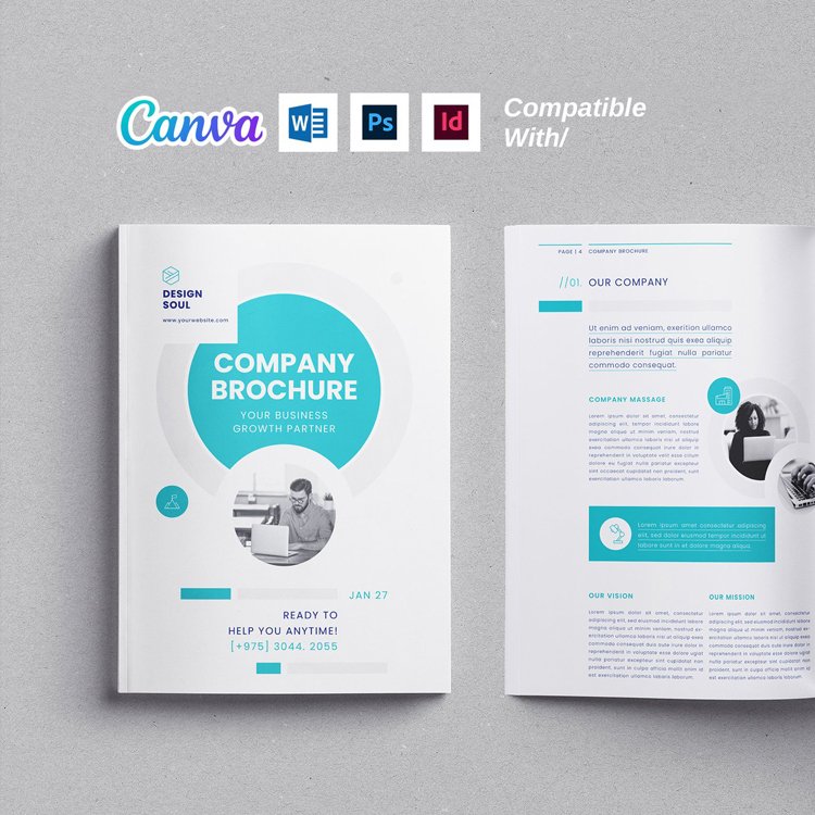 طرح لایه باز بروشور شامل فایل PSD و word و indesign