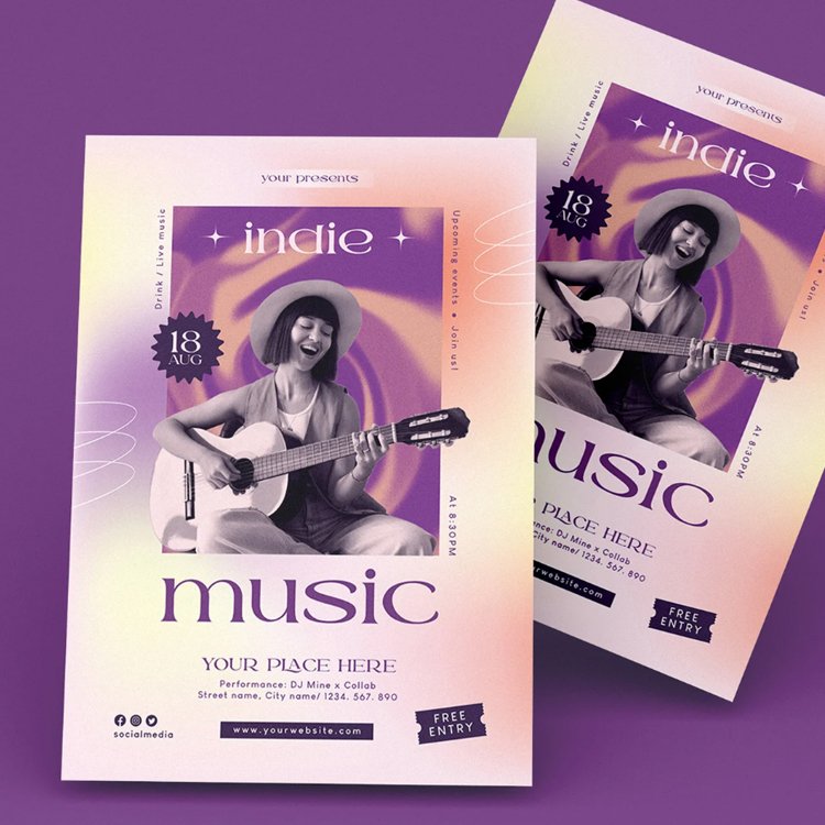 طرح لایه باز پوستر موزیک شامل فایل PSD و AI
